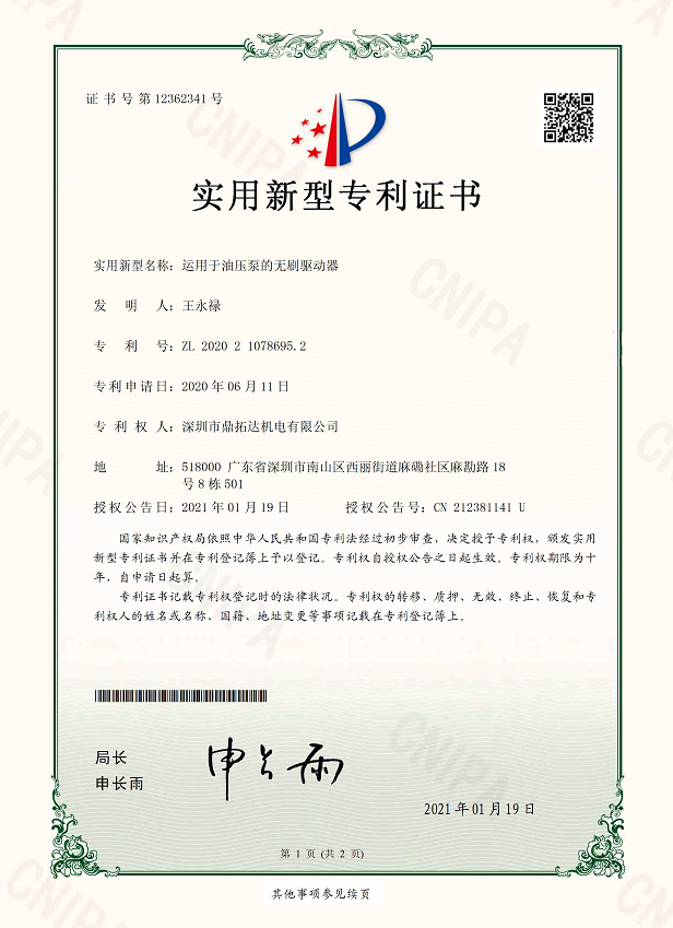 首頁->產品認證->運用于油壓泵的無刷驅動器